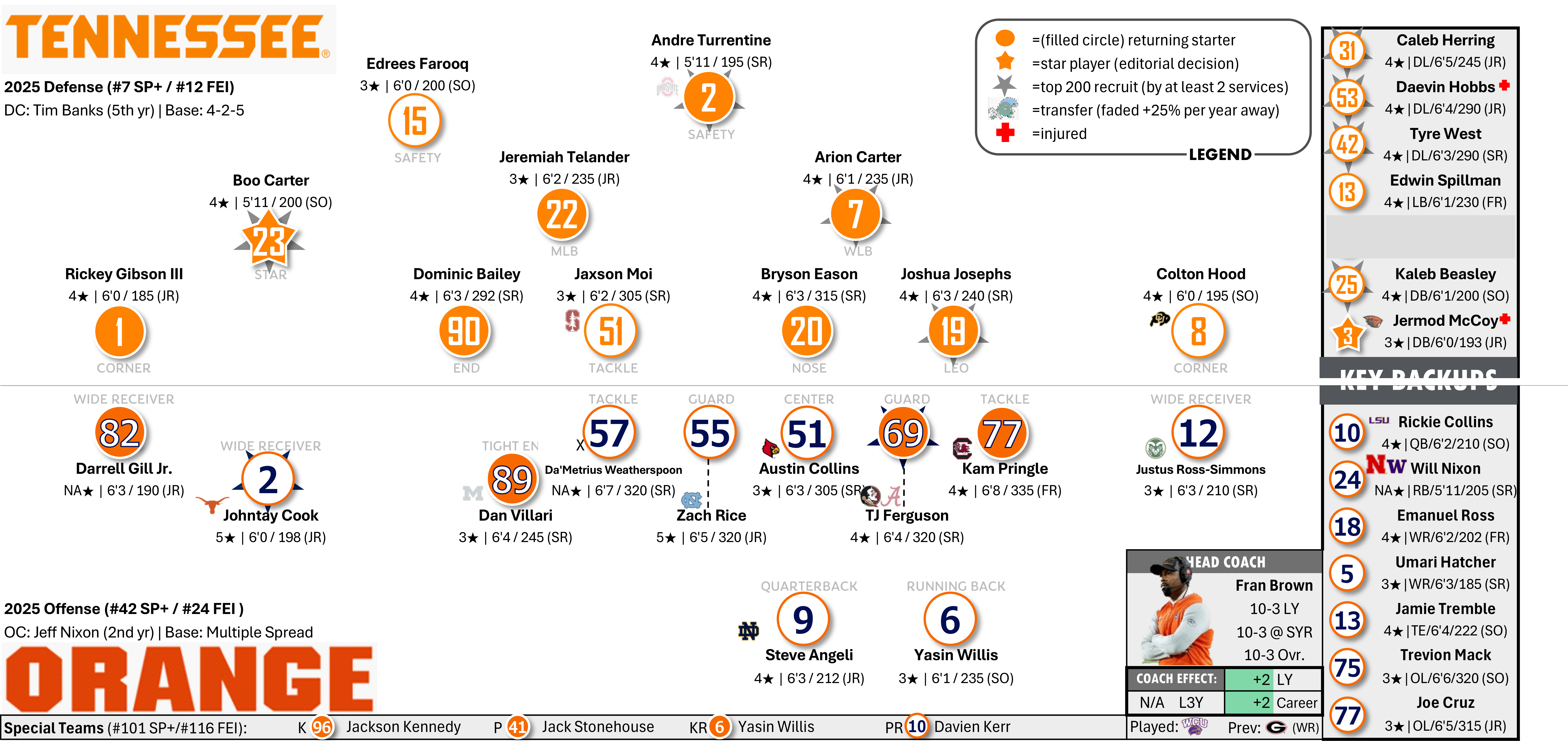 Also a talented group of Vols—several blue chippers on the board and ready to fill in at several positions.