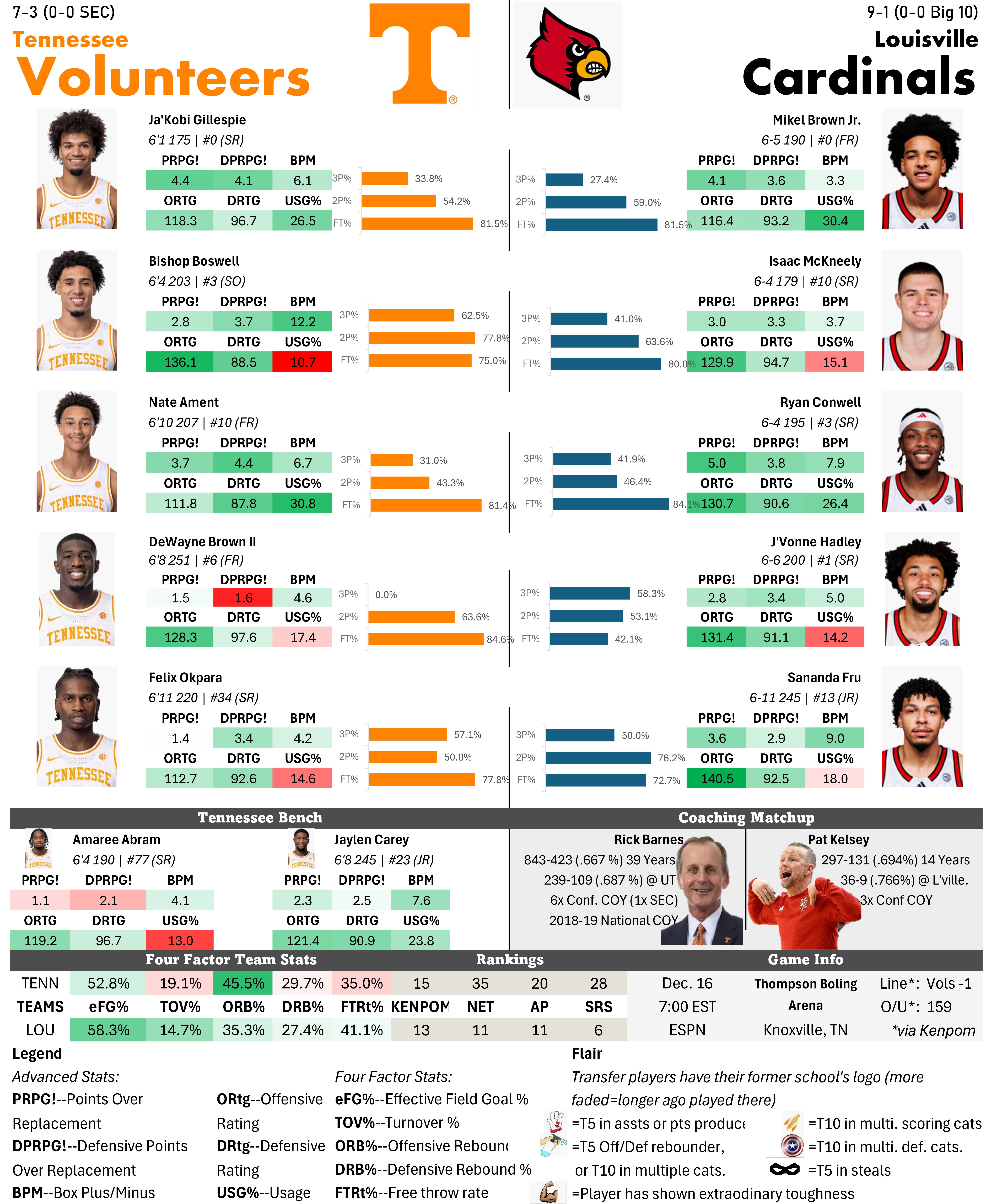 IHTIT: Tennessee Vols vs. Louisville Cardinals Basketball Infographic