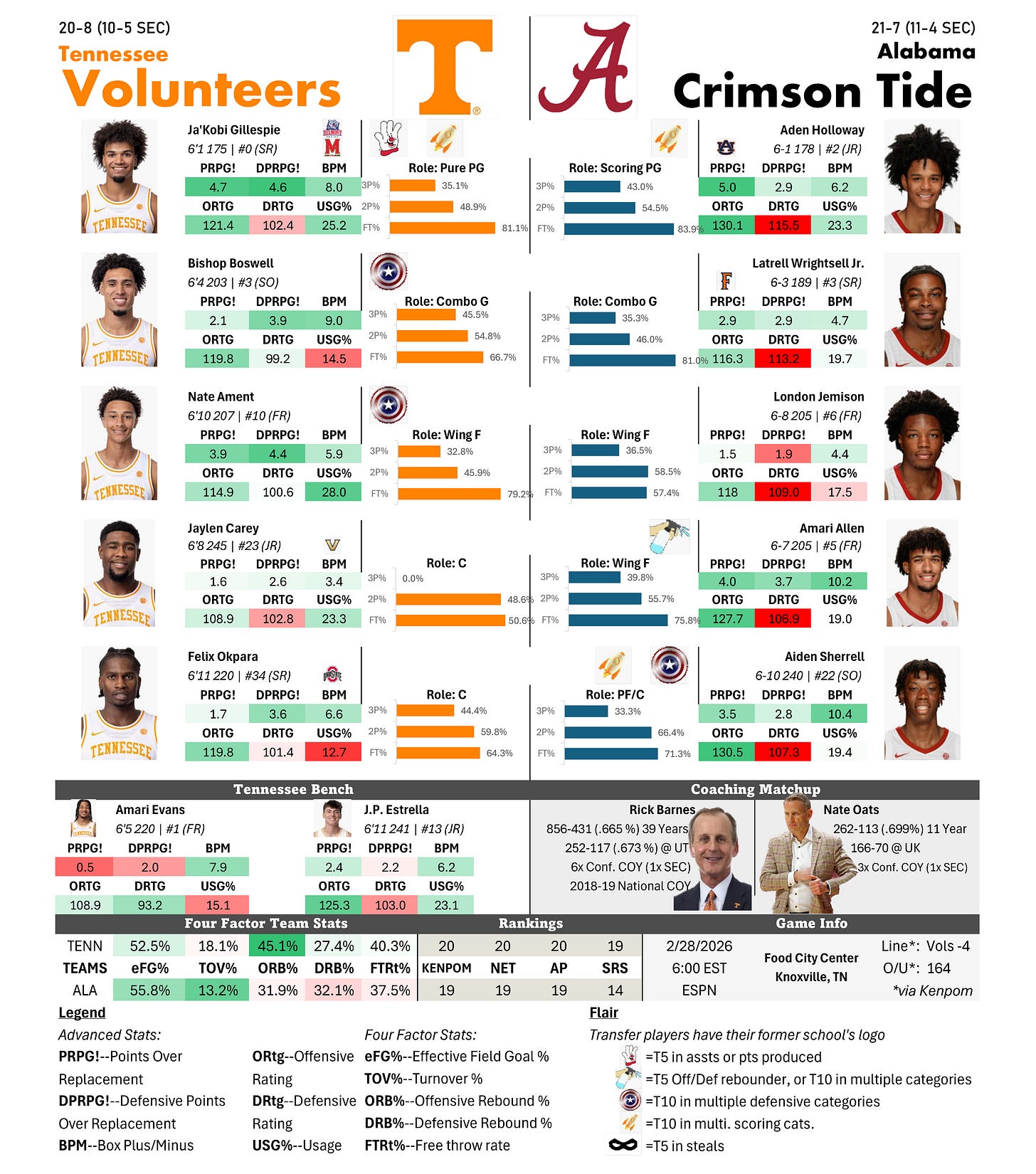 Tennessee Vols vs. Alabama Crimson Tide Basketball Preview 2026
